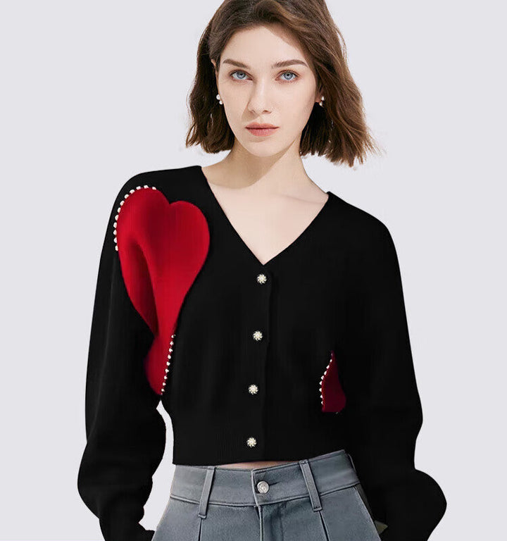 Add a touch of charm to your spring wardrobe with the Maya Heart-Knit Cardigan, a delightful new arrival for 2025. This stylish cardigan features a cute heart-knit pattern, adding a playful and youthful twist to a classic silhouette. Designed with a slimming fit, it¡¯s a perfect layering piece that is both flattering and comfortable. The versatile black color makes it easy to pair with a variety of outfits, while the high-quality knit material provides just the right amount of warmth for those cool spring days.